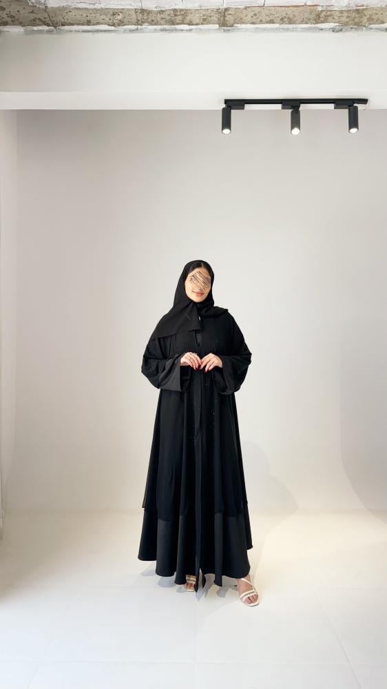 التصميم: عباية طبقات كويتي بتصميم دبل كلوش انسيابي يناسب الإطلالات الرسمية والكاجوال، مع لمسة من الفخامة.